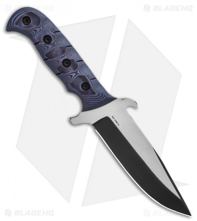 This Dawson Knives Bodyguard has a two-tone blade and a gray and black G-10 handle.