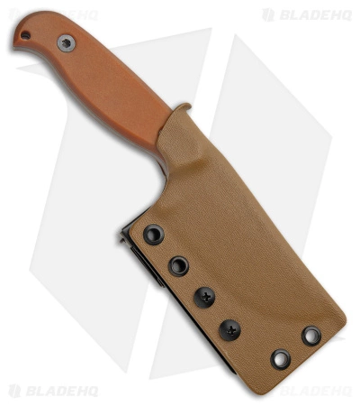 - Tan Kydex sheath with an ULTICLIP attached to it.