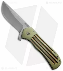 This 3.5″ Recon from Doc Shiffer features a double anodized and tumbled titanium handle with bronze anodized grooves, back spacer and pocket clip. The drop point blade is stonewashed. The flipper allows for easy opening of the knife with one hand.