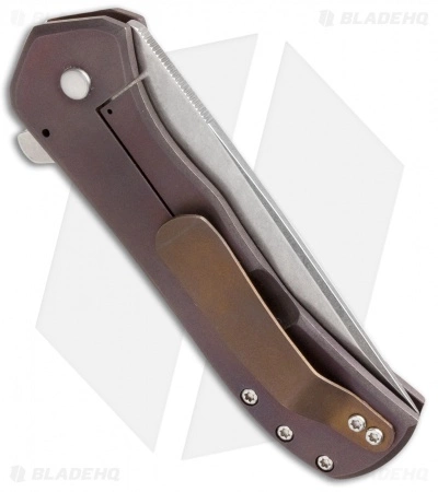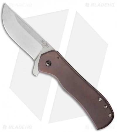 The Field Grade Recon folder is a mid-tech model from Doc Shiffer Knives that displays excellent build quality and smooth action. It has a stonewashed blade with flipper opener and a tumbled, root beer brown anodized titanium handle with a bronzed pocket clip and satin stand-offs. The titanium is 0.15″ thick and the edges are chamfered for comfort.