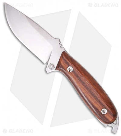 The Woodsman Version features a stonewashed Niolox steel blade and Santos wood scales as well as an Italian leather sheath.