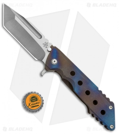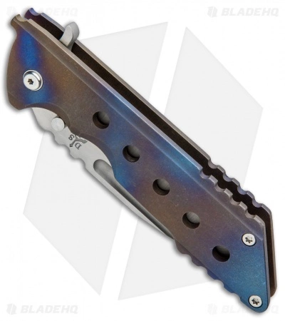 Great lines and a beefy build only begin to describe the Kickstand flipper from DSK Tactical. It measures in at a respectable 10-1/2 inches overall and provides plenty of surface area for the user with larger hands or when wearing gloves. The titanium handle is flamed with a five hole pattern. This Kickstand has a two-tone satin finished blade.