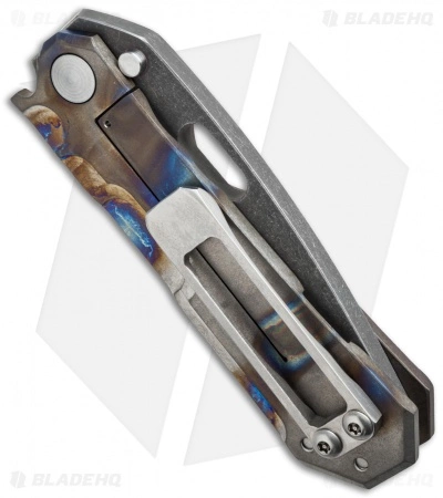 For some, a gentleman’s folder evokes images of a slim, lightweight, and sophisticated knife. The GF-1 Gentleman Folder from DSK Tactical Knives would only resemble a gentleman’s folder in the hand of Andre the Giant. The blade on this knife is right chisel ground with an acid stonewash finish. The titanium handle is anodized and maze milled.
