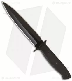 The Entrek Close Combat knife is an exciting and tough tactical fighting knife. It has a double-edged 440C blade with a black finish. The handle features an aluminum guard and black Micarta scales. The included Kydex sheath has a wide belt loop.