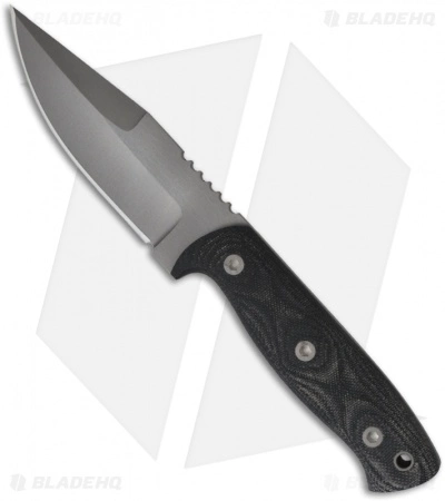 The handle uses black canvas micarta. Black Canvas micarta not only looks good but it also provides a very good gripping surface as well as being impervious to heat, cold, oil, water and other things that would destroy most handle materials.