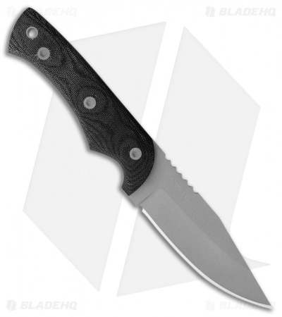 The EnTrek Cougar offers a 8.6″ overall length with a 375″ gray finished blade. It has a 440C stainless blade with full tang construction for heavy duty use. The handle is outfitted with black micarta handle scales with a lanyard hole. Item includes a black molded Kydex belt sheath with lashing holes.