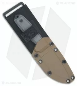 The ESEE Jump Proof MOLLE sheath for ESSE-3 knives gives you the confidence that your knife will be safely stowed on your hip regardless of the activity. Durable black nylon is MOLLE compatible for attachment to your pack or belt. The friction fit coyote brown molded plastic sheath creates a firm retention of the blade with a velcro retaining strap that loops over the handle for a snug fit, topped off with an elastic pommel cover that prevents any movement of the blade.