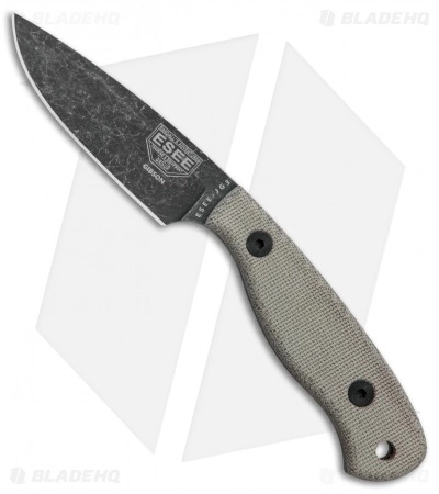 This James Gibson designed JG3 has a stonewashed black oxide finished 1095 steel blade with a flat grind paired with a tan Micarta handle. It is supplied with an upgraded leather pouch sheath. The Camp-Lore series of knives from ESEE are designed by some of the most experienced woodsmen in the world and made in Idaho, USA.