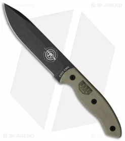 The ESEE-CM6 is a collaboration with Terrill Hoffman. This is a tactical and practical fixed blade knife that is equally splendid for camping, survival, and use on the battlefield. This Rowen-made knife has tactical gray coated 1095 steel construction. The sharpened swedge on the blade enhances penetration, while the black G-10 handle is shaped to provide a secure and stable grip. The front of the blade is marked with Terrill Hoffman’s Chestnut Mountain Proving Grounds logo, the back side is numbered.