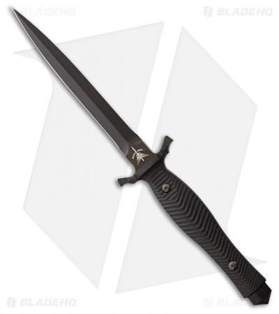 The Fox Bellum Daga tactical fixed blade dagger is a close combat tool ready for the worst environments. Featuring a 6.75″ black dagger blade, the Bellum Daga excels at thrust cuts, while it’s generous blade length allows you the ability to control the range of an attack. Made from stainless N690Co, you can hone your Bellum Daga to a razors edge and not worry about corrosion or rust forming. The integrated black hand guard works two-fold, to prevent slippage off the handle, as well as blocking any foreign objects from contacting your hands. Groove black G-10 scales are comfortable and fit well in the hand, while providing a secure and solid grip. The knife’s pointed pommel functions not only as an emergency glass breaker but a blunt edge to subdue potential threats. It’s easily carried in the MOLLE compatible black nylon sheath that features additional webbing and Velcro for a myriad of mounting and carrying options.