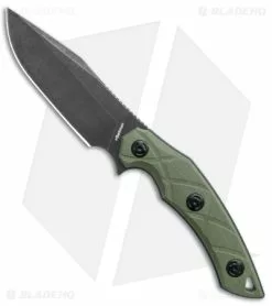 - Black stonewashed drop point blade made from 8Cr13MoV steel.