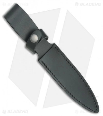The 5″ N690Co stainless steel blade features a spear point tip and partially serrated edge. Excellent at piercing and slicing through a variety of of materials, the Combat Dagger is capable of a myriad of applications. Black dyed stacked leather handles fill the hand for a solid grip. Easily carried with the included black leather belt sheath.