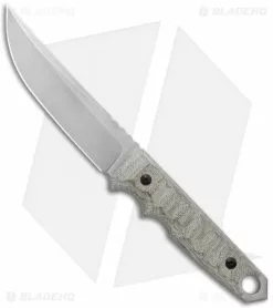 The Fox Knives Ryu comes from the FKMD (Fox Knives Military Division) line, and it has materials and build that prove it’s worthy of that distinction. The blade is made of premium Niolox stainless steel that can take a beating and remain functional. The knife has a hollow grind that aids in cutting power, and gives the edge longer life. the handle is textured and sculpted to fit nicely in the hand. The knife includes a kydex sheath. This model has a green micarta handle and a stonewashed blade.