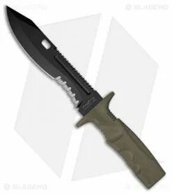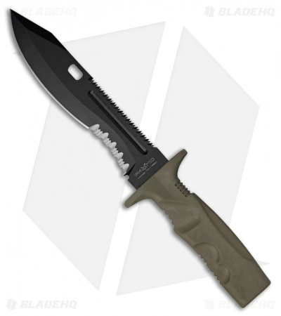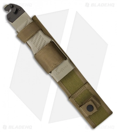 Made from Bohler N690Co stainless steel the 7.25″ blade features an aggressive profile with prominent tip, sweeping belly and serrations. Coated in a black TiNi finish, the non-reflective finish is perfect for operators who need stealth on their side. Able to attach to standard bayonet fixtures, the hand guard provides added security in hand to hand combat. Comfortable tan Forprene handles provide a secure grip in hand while the ballistic nylon MOLLE compatible sheath can be carried in a variety of different methods.