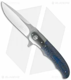 This LL-BB Folder features a Bohler N690 stainless steel blade with flipper and super smooth action with an IKBS pivot. The handle features Zirconium bolsters and lightning strike carbon fiber scales. Gold anodized titanium liners and a stainless steel back spacer make up the frame and includes a matching lightning strike carbon fiber pocket clip.