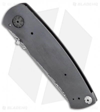 This LL-HH folder features a Hakkapella Damasteel steel blade and an IKBS pivot for super smooth and slick action. A spine grind and a snub nose tip add a unique touch to the blade design. The handle is made from blue anodized titanium with a damasteel spacer. Item includes a tough titanium pocket clip for tip up carry.