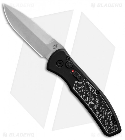 - One-hand automatic opening with a front loaded firing button and safety lock.