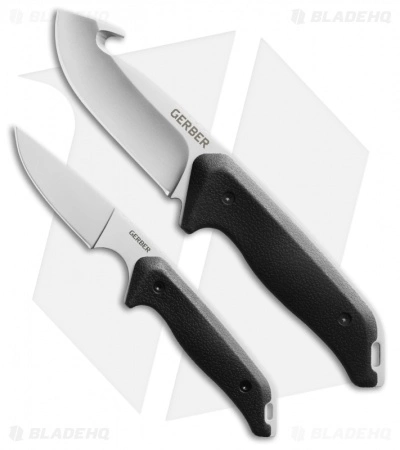 The Moment line of Hunting knives from Gerber offer a specific set of skills for any moment in a hunter’s day. The Moment Field Dress Kit is tailored to meet all your needs. It includes a large utility fixed blade with a gut hook for safety and ease. The small fixed blade knife has a smaller shape for smaller tasks, caping and detailed tasks. Both knives feature full-tang stainless steel construction and Gerber’s comfortable rubber overmold for excellent grip in any environment. The Moment Field Dress Kit includes a nylon sheath with pockets for both knives.