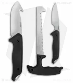 The Moment Field Dress Kit III includes the Moment Fixed Blade Saw, the Moment Fixed Blade Gut Hook and the Moment Small Fixed Blade Caping Knife housed within a roll-up nylon sheath. Equipped with inviting, comfortable Moment family molded rubber grip handles, and made with full tang construction to offer durability over the long haul, this is the ideal set for the avid, serious hunter.