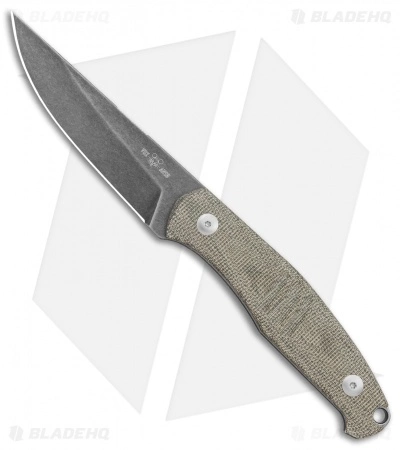 - Drop point fixed blade made from Bohler N690 steel with a satin finish.