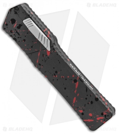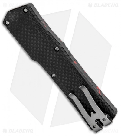 This Cleric OTF automatic has a red splash aluminum handle with a carbon fiber back and a dagger blade with a stonewashed finish. It offers a heavy duty build with a clean fit and finish, and a fierce double action automatic opener. The handle has a front loaded titanium thumb slide for ease of use and subtle contouring for a substantial grip. Item includes a drawstring Heretic Knives pouch.