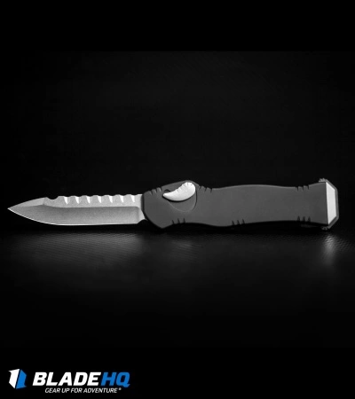 The Hydra by Heretic Knives is a powerful single-action OTF automatic knife built with a unique swiveling button safety for worry-free pocket carry. This model features a stonewashed CPM-154 stainless steel blade with grooved jimping along the spine. Its black aluminum handle is comfortably contoured and textured for secure use. The knife comes complete with a stonewashed double-pronged pocket clip and a carbon fiber insert charging handle grip insert.