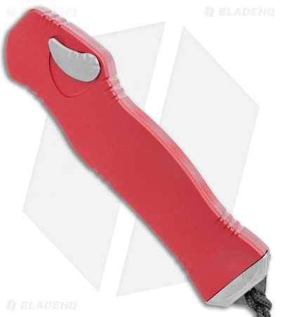 The Hydra by Heretic Knives is a powerful single-action OTF automatic knife built with a unique swiveling button safety for worry-free pocket carry. This model features a Battleworn CPM-S35VN stainless steel blade with grooved jimping along the spine. Its red aluminum handle is comfortably contoured and textured for secure use. After firing, just push the button and pull down on the lanyard to reload the spring. The knife comes complete with a Battleworn double-pronged pocket clip.