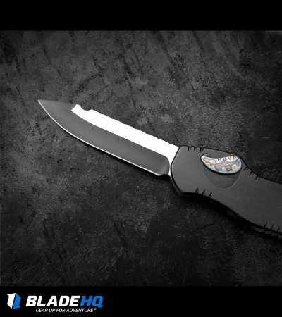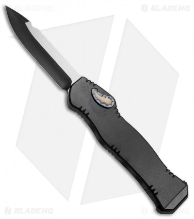 The Hydra by Heretic Knives is a powerful single-action OTF automatic knife built with a unique swiveling button safety for worry-free pocket carry. This model features a two-tone DLC blade with grooved jimping along the spine. Its black aluminum handle is comfortably contoured and textured for secure use. The knife comes complete with a black double-pronged pocket clip and a carbon fiber charging handle grip insert.