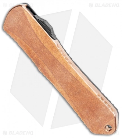 This Manticore-E has a copper and carbon fiber handle. Over time the copper will acquire a beautiful patina. It also features a DLC coated recurve blade.