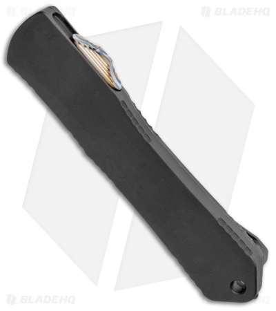This model of the Manticore-S comes equipped with a hand-ground satin finished blade and a black aluminum handle with marbled carbon fiber and titanium hardware.
