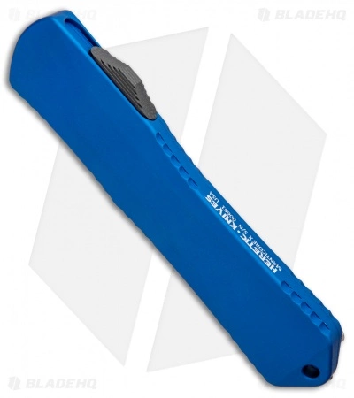 This model of the Manticore-X comes equipped with a stonewash finished dagger blade and a blue anodized aluminum handle.