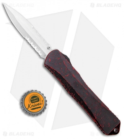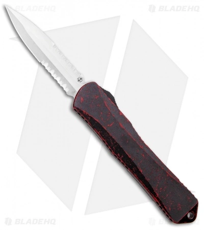 This model of the Manticore-X comes equipped with a stonewashed serrated dagger blade and a red Breakthrough anodized aluminum handle.