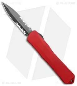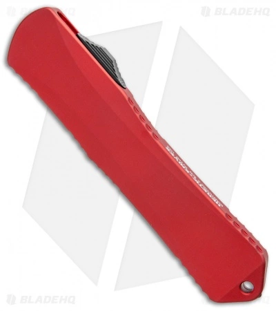 This model of the Manticore-X comes equipped with a black coated dagger blade with double serrations and a red anodized aluminum handle.