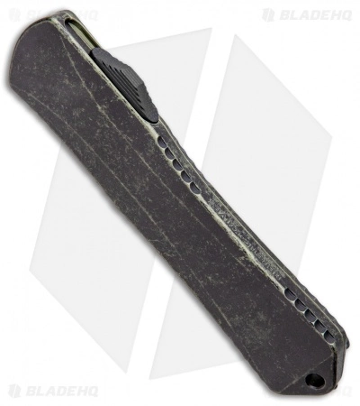 The Heretic Knives Manticore-X is a full size Out-the-Front knife with a clean and functional aesthetic. It features a contoured aluminum chassis with jimping all along the sides. This lightweight and capable OTF knife opens and closes smoothly, making for an excellent everyday or tactical carry. Comes with a ball-bearing glass breaker and a deep carry pocket clip.