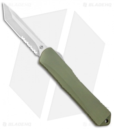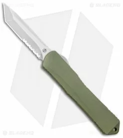 This model of the Manticore-X comes equipped with a stonewash finished tanto blade with partial serrations and an OD green anodized aluminum handle.