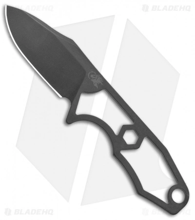 Rick Hinderer’s LP-1 is a lightweight neck knife for concealed carry and EDC chores. This one has a black DLC finished drop point blade. Three-finger grip with deep index groove keeps the knife secure in hand. Includes a Kydex sheath with a ball chain and 1″ & 1/2″ spaced attachment points for belt carry systems.