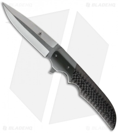 This hand-made Drop Point Flipper from Jason Clark is a smooth, precise folder with great looks and action. The handle features a lightning strike carbon fiber scale and a zirconium bolster with a titanium frame lock back. The blade is stonewashed Carpenter CTS-XHP steel and glides open with the IKBS bearing system. This Jason Clark folder is an excellent choice for everyday carry and comes with a tip-up carry titanium pocket clip.