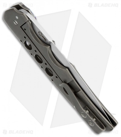 This Spear Point Flipper from Jason Clark features a Moku-Ti bolster, silver twill scale and drilled titanium framelock. The handle has a filed stainless steel backspacer and tip-up titanium pocket clip. The hollow ground spear point blade has a stonewash finish. IKBS outfitted for excellent action.