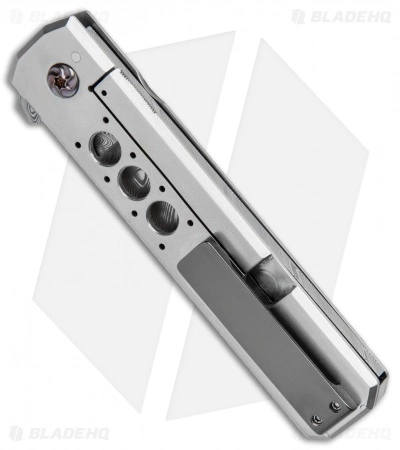 This custom Straight Razor flipper from Jason Clark sports a hollow ground, Damasteel blade. The handle is outfitted with a zirconium inlay, titanium frame lock, and a minimal stainless steel backspacer. An IKBS ball-bearing pivot ensures smooth action and easy one-handed operation. Comes fitted with a wide zirconium pocket clip.