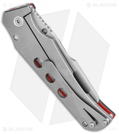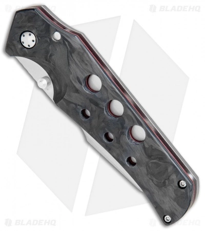 This Jason Guthrie Custom Scout model features a marbled carbon fiber handle with a skeletonized titanium frame and a satin finished wharncliffe blade. Item has a red liner and a titanium pocket clip.