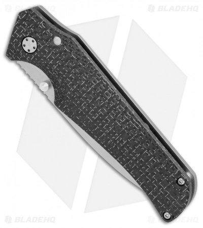 This Scout model has a lightning strike carbon fiber handle and a satin finished drop point blade.