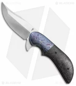 This custom Barely Legal flipper has a suave blend of materials. It features a compound ground CTS-XHP blade, Scrambled MokuTi bolsters/pocket clip, and carbon fiber scales. The handle is open-built with titanium liners and lock tab. Includes signature tip-up carry pocket clip.