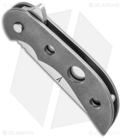 This handmade Micro Intro knife is direct from Jeff VanderMeulen. It has a full titanium handle with drilled front and an acid wash finish. A polished moku-ti pocket clip is a great touch. The blade is hand satin finished S30V steel with a flipper opener and ball-bearing pivot.