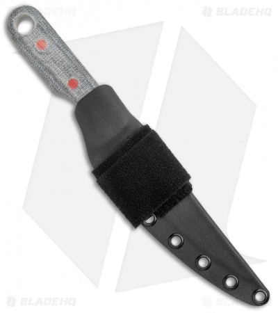 - Black Kydex sheath with modular hook-and-loop attachment.