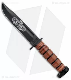 For generations Ka-Bar fixed blade knives have been a trusted companion for Soldiers, Marines and Seamen alike. Now with the tradition over a century of knife-making brings, this knife has been updated with modern tooling and construction. It comes equipped with the iconic clip point blade, made from expertly ground and heat treated 1095 Cro-Van steel. The stacked leather handles are bonded together and contoured into the familiar oval shape for excellent comfort, traction, and control. Item includes a powered steel guard and pommel, and a brown leather sheath.