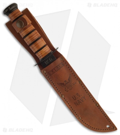 Featuring the iconic clip point blade, 1095 Cro-Van steel is painstakingly ground and heat treated to ensure each knife is tough and durable while remaining easy to sharpen to a hair popping edge. Stacked leather handles are bonded together and contoured into the familiar oval shape, comfortable in hand while providing excellent traction and control. Safely nestled between the finger guard and pommel, the Ka-Bar Fighting/Utility knife remains secure in hand whether you’re in close quarters combat or blazing a trail through thick vegetation. The embossed US NAVY brown leather sheath adds to the aesthetic appeal of the knife with secure belt carry.