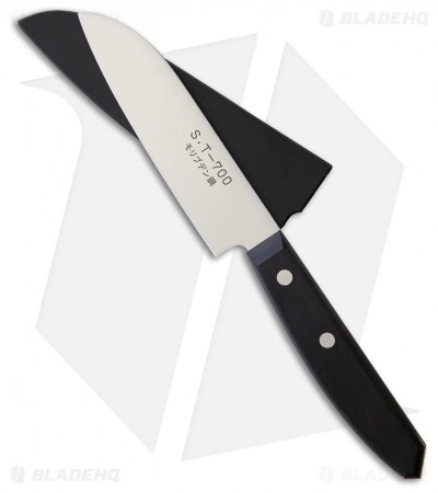 Ever needed a kitchen knife that was bigger than a paring knife but smaller than a Chef’s knife? The Kanetsune ST-700 Fruit Knife is the answer. The 4.375″ stainless steel blade offers that mid-sized versatility. Ergonomic black wood handles are comfortable in hand and provide excellent control of the knife. Paired with a matching black wood sheath, the Kanetsune ST-700 is a vital tool in any kitchen.