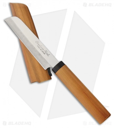 An affordable addition to any kitchen, the Kanetsune kamagata Fruit knife is the perfect tool for small detailed chopping tasks. Featuring a 3.625″ 420J2 surgical steel blade, popular for it’s corrosion resistance and ease of sharpening, the sheepsfoot blade shape makes processing herbs and vegetables a breeze. Attractive wild cherry wood has been used for the handle and matching sheath for a functional and beautiful knife.