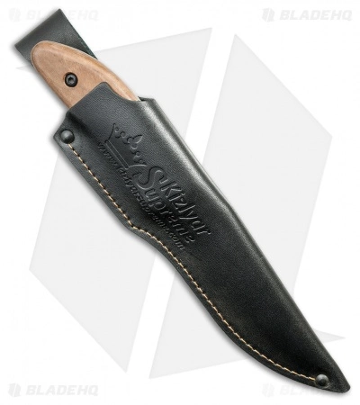 The Flint by Kizlyar Supreme is a full tang, fixed blade knife perfect for the trail or campsite. Featuring a 5.125″ AUS-8 stainless steel blade, daily camp chores from fire prep and food prep or cleaning game is no chore at all. The precise point and moderate belly allow for quick processing and easy clean up. A contoured Walnut handle is not only attractive but comfortable in hand, allowing prolonged use with little fatigue. A black leather sheath sporting the Kizylar Supreme logo with a belt dangle loop makes for easy carry.
