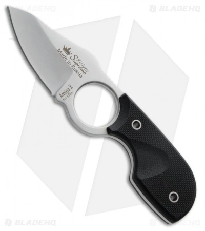 The Amigo X was designed from the ground up to be a class leading neck knife. It has just about everything you’re looking for in a small everyday fixed blade, including consideration for safety, size and weight, ease of extraction, premium materials, and uncompromising utility. This Amigo X has an AUS-8 steel full-tang blade with lightly textured black G-10 scales. The index finger ring ensures a reliably grip in all conditions. An exciting element of the Amigo is the sturdy, yet lightweight G-10 sheath.